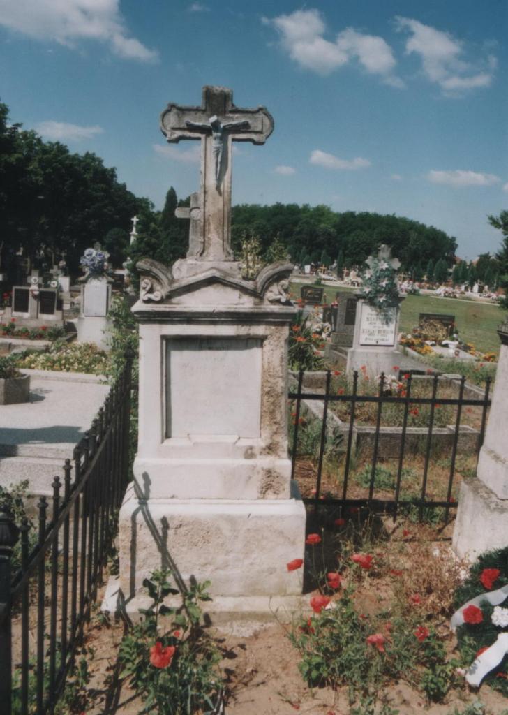 Itt nyugszik az Úrban Takács János 1848-as honvédhuszár százados nyugalmazott gazdatiszt meghalt 1887-ik év január 5-én életének 71-ik évében