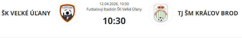 Futbalový klub Veľké Úľany pozýva obyvateľov na  futbalový zápas mužov ŠK Veľké Úľany – ŠK Králov Brod ktorý sa uskutoční  dňa 12. apríla 2026, v nedeľu,   o 10:30 hod. na miestnom futbalovom ihrisku.